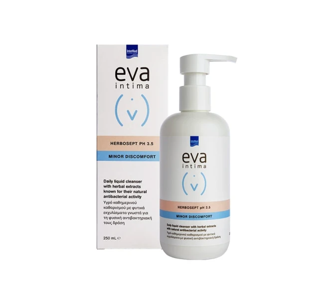 Το Eva Intima Wash Herbosept είναι απαλό υγρό χωρίς σαπούνι, με ήπια αντιμικροβιακή δράση, για τον καθημερινό καθαρισμό της ευαίσθητης περιοχής και την παράλληλη ανακούφιση και προστασία αυτής από τυχόν ερεθισμούς ή φλεγμονές χάρη στον συνδυασμό βοτάνων με αντιμικροβιακή και καταπραϋντική δράση